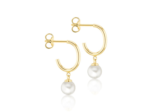 Gold and Pearl Drop Semi Hoop Earrings for Her