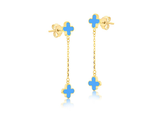 Turquoise Leaf Motif Gold Drop Earrings for Her
