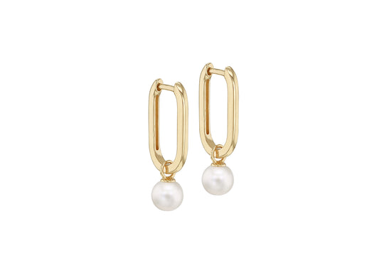 Gold and Pearl Drop Ovate Hoop Huggies Earrings for Her
